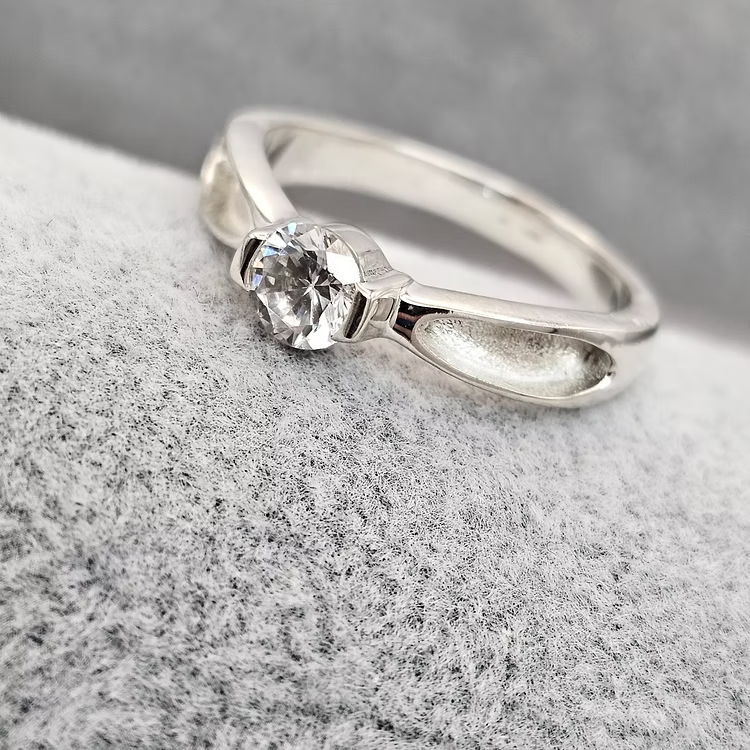 This graceful solid silver solitaire ring includes side channels for holding special inclusions, making it a treasured and personal keepsake. Please note, the wishbone CZ ring shown in the photo is not included in the price, but can be added on.
