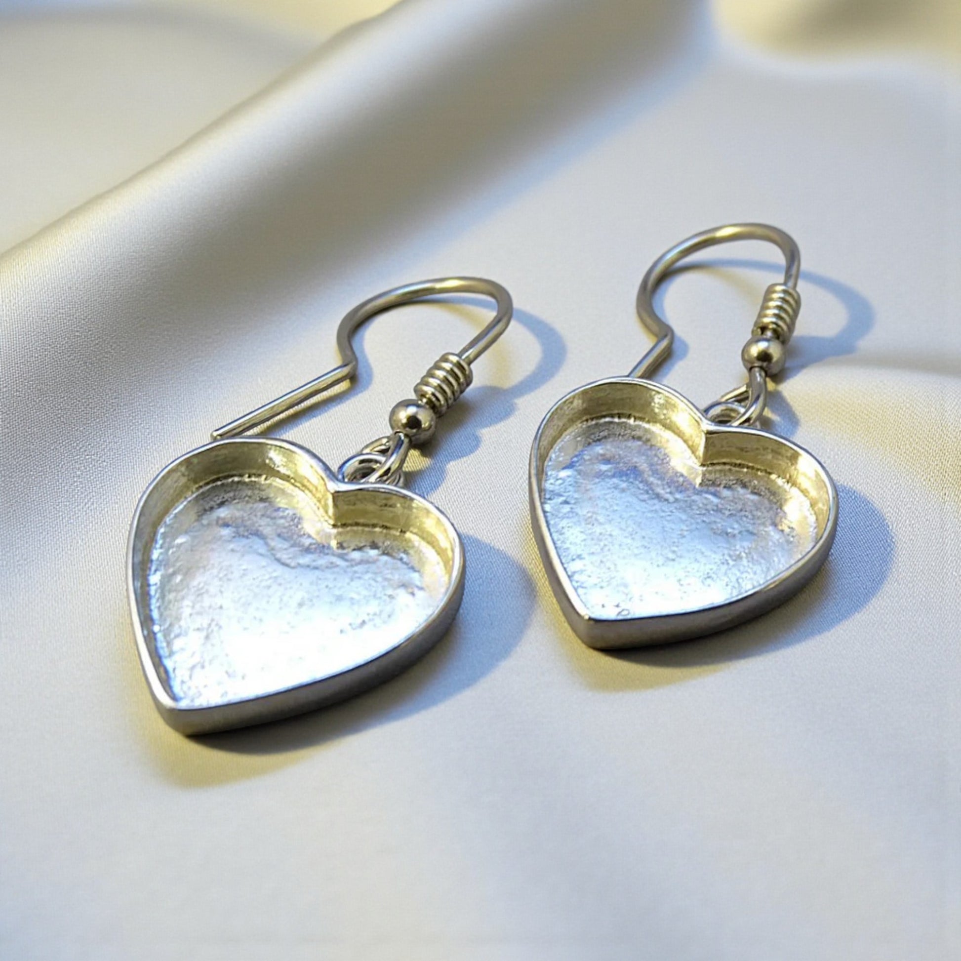 These solid back heart shaped drop earrings are made from solid 925 sterling silver.